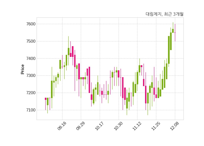 한편, 대림제지의 14시 23분 현재주가는 7,550원으로 직전 거래일 대비 20원(-0.26%) 하락이며, 거래량은 7,723주이다.