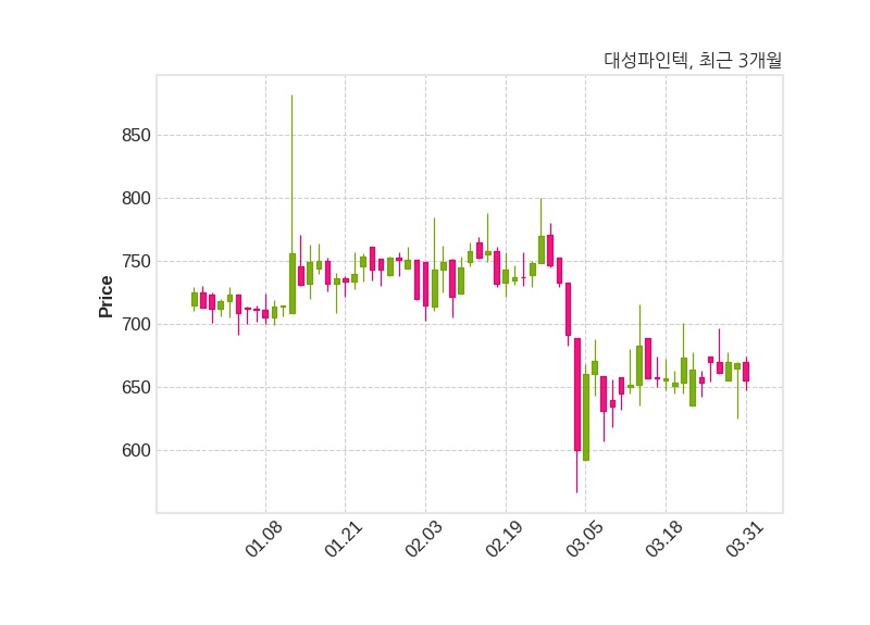 대성파인텍은 특별관계자 이동석의 지분율이 33.06%에서 32.94%로 변동했다고 31일 공시했다. 한편, 대성파인텍은 장 마감 이후 해당 기업공시를 발표했으며 오늘 종가가 655원, 거래량은 100,098주로, 직전 거래일 대비 14원(-2.09%) 하락했다.