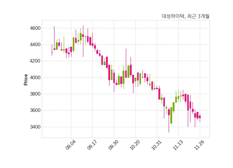 대성하이텍은 특별관계자 최호형의 지분율이 45.38%에서 44.88%로 변동했다고 26일 공시했다. 한편, 대성하이텍의 14시 13분 현재주가는 3,510원으로 직전 거래일 대비 5원(+0.14%) 상승이며, 거래량은 11,298주이다.