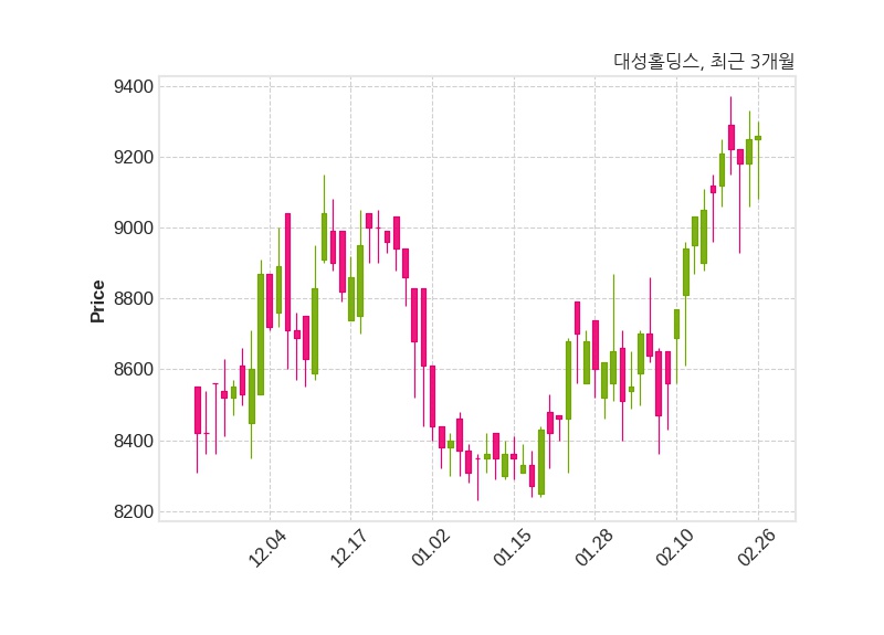 한편, 대성홀딩스는 장 마감 이후 해당 기업공시를 발표했으며 오늘 종가가 9,260원, 거래량은 40,483주로, 직전 거래일 대비 10원(+0.11%) 상승했다.