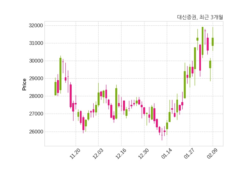 한편, 대신증권은 장 마감 이후 해당 기업공시를 발표했으며 오늘 종가가 31,300원, 거래량은 216,372주로, 직전 거래일 대비 1,300원(+4.33%) 상승했다.