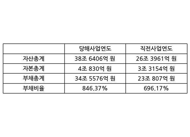 또한, 이번사업연도의 자산총계는 38조 6406억 원으로 직전사업연도 대비 46.39% 증가한 한편, 부채총계는 34조 5576억 원으로 49.73% 증가, 자본총계는 4조 830억 원으로 23.15% 증가했다.