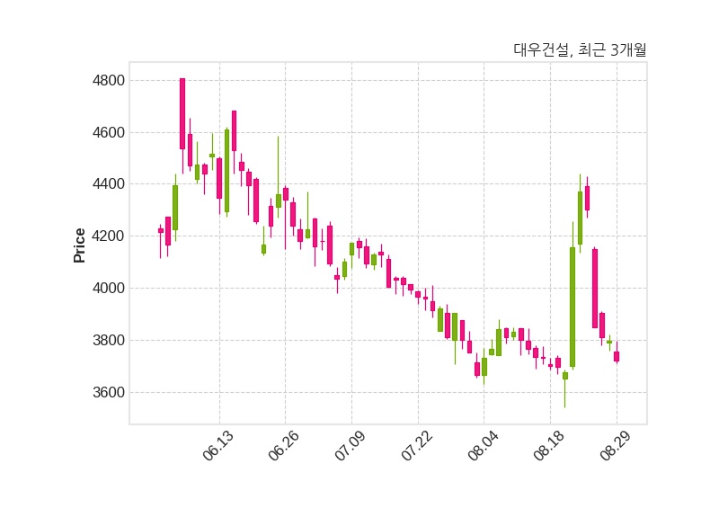한편, 대우건설의 14시 41분 현재주가는 3,720원으로 직전 거래일 대비 75원(-1.98%) 하락이며, 거래량은 1,945,302주이다.