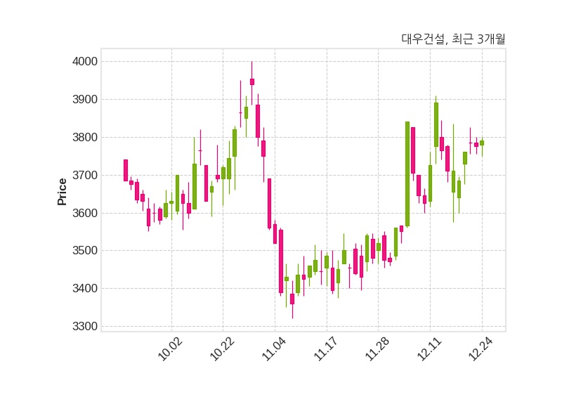 한편, 대우건설의 09시 13분 현재주가는 3,790원으로 직전 거래일 대비 15원(+0.4%) 상승이며, 거래량은 90,417주이다.
