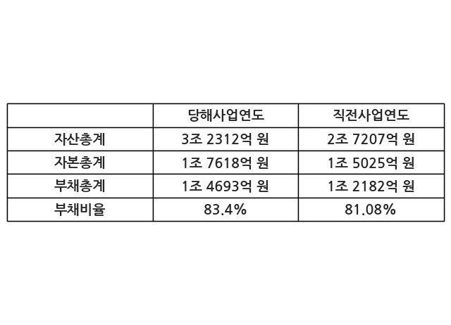 또한, 이번사업연도의 자산총계는 3조 2312억 원으로 직전사업연도 대비 18.76% 증가한 한편, 부채총계는 1조 4693억 원으로 20.62% 증가, 자본총계는 1조 7618억 원으로 17.26% 증가했다.