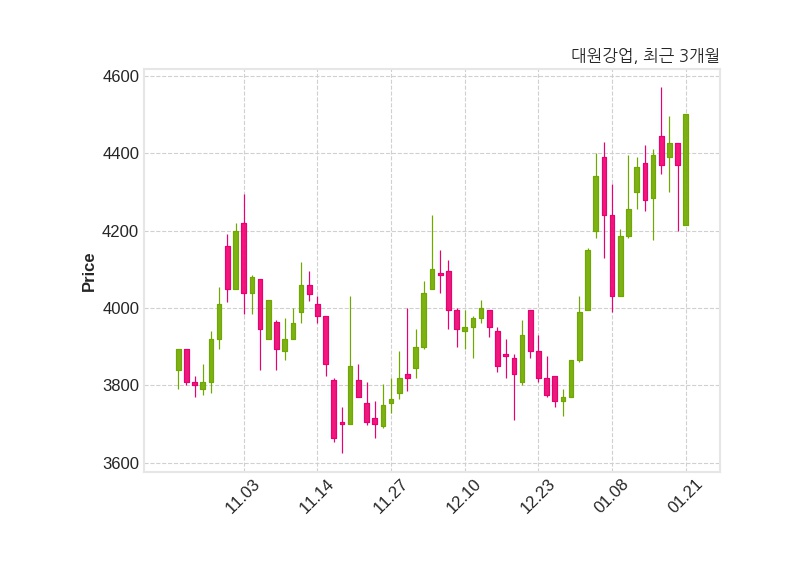 한편, 대원강업은 장 마감 이후 해당 기업공시를 발표했으며 오늘 종가가 4,500원, 거래량은 352,073주로, 직전 거래일 대비 130원(+2.97%) 상승했다.