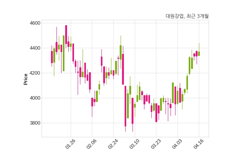 한편, 대원강업은 장 마감 이후 해당 기업공시를 발표했으며 오늘 종가가 4,370원, 거래량은 349,890주로, 직전 거래일 대비 35원(+0.81%) 상승했다.