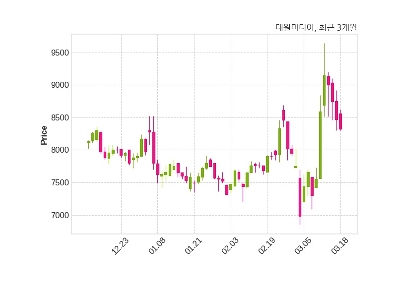 대원미디어는 특별관계자 정욱의 지분율이 36.63%에서 36.85%로 변동했다고 18일 공시했다. 한편, 대원미디어는 장 마감 이후 해당 기업공시를 발표했으며 오늘 종가가 8,320원, 거래량은 171,606주로, 직전 거래일 대비 150원(-1.77%) 하락했다.