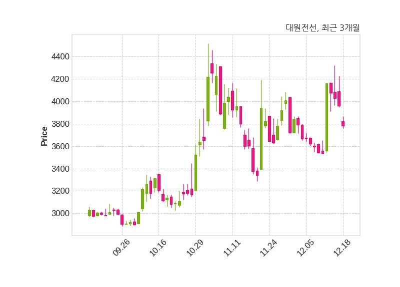 한편, 대원전선의 10시 37분 현재주가는 3,780원으로 직전 거래일 대비 180원(-4.55%) 하락이며, 거래량은 2,291,263주이다.