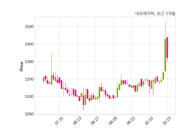 한편, 대유에이텍은 장 마감 이후 해당 기업공시를 발표했으며 오늘 종가가 1,322원, 거래량은 873,102주로, 직전 거래일 대비 106원(-7.42%) 하락했다.