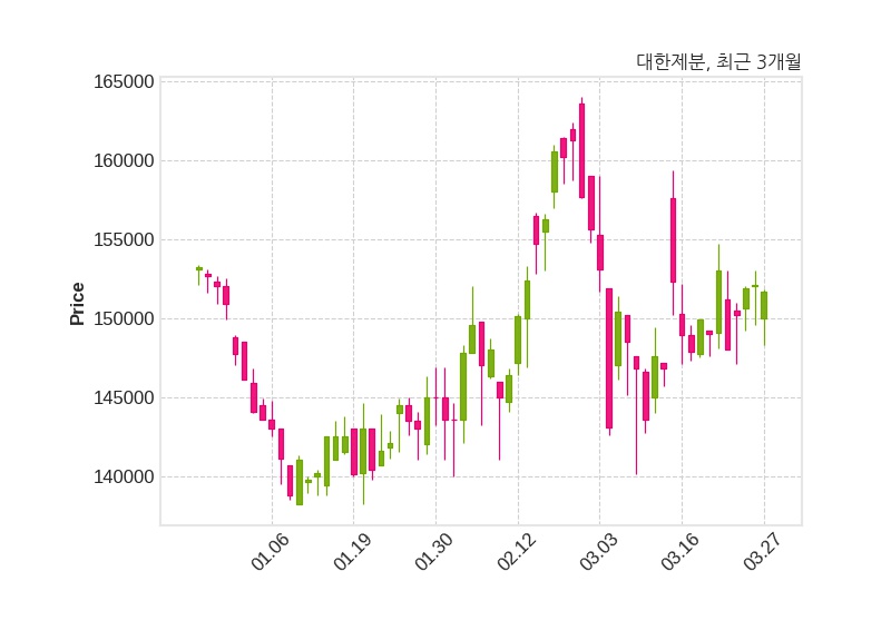 한편, 대한제분은 장 마감 이후 해당 기업공시를 발표했으며 오늘 종가가 151,700원, 거래량은 1,526주로, 직전 거래일 대비 400원(-0.26%) 하락했다.