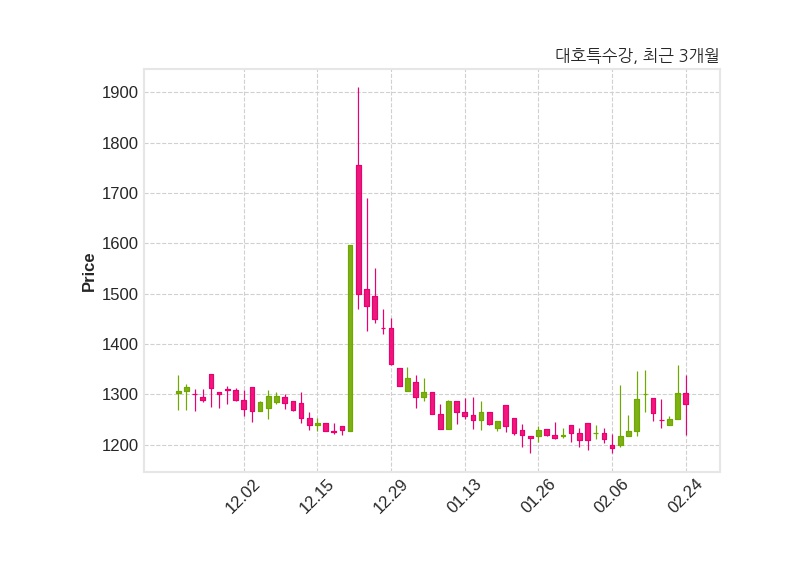 한편, 대호특수강은 장 마감 이후 해당 기업공시를 발표했으며 오늘 종가가 1,281원, 거래량은 55,749주로, 직전 거래일 대비 22원(-1.69%) 하락했다.