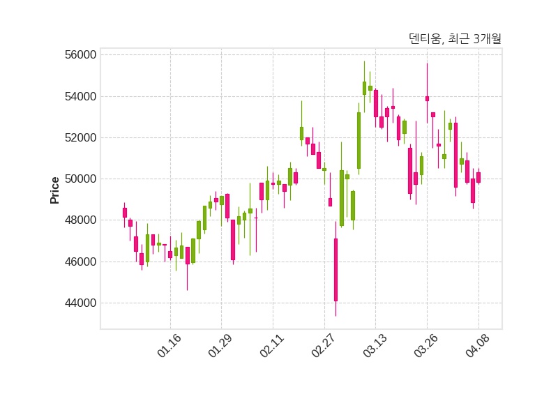 덴티움은 특별관계자 얼라인파트너스자산운용의 지분율이 10.47%에서 8.16%로 변동했다고 08일 공시했다. 한편, 덴티움은 장 마감 이후 해당 기업공시를 발표했으며 오늘 종가가 49,850원, 거래량은 29,601주로, 직전 거래일 대비 1,000원(+2.05%) 상승했다.