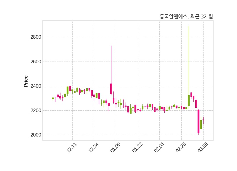 한편, 동국알앤에스의 14시 22분 현재주가는 2,125원으로 직전 거래일 대비 5원(+0.24%) 상승이며, 거래량은 47,838주이다.