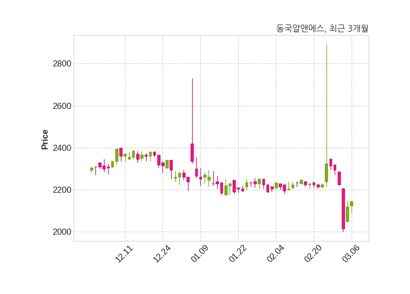 한편, 동국알앤에스의 14시 23분 현재주가는 2,145원으로 직전 거래일 대비 25원(+1.18%) 상승이며, 거래량은 51,026주이다.