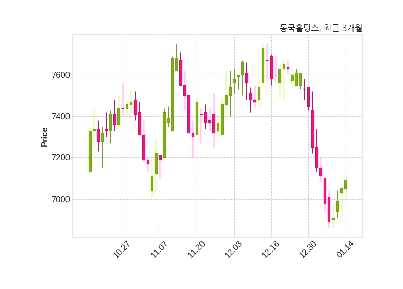한편, 동국홀딩스는 장 마감 이후 해당 기업공시를 발표했으며 오늘 종가가 7,090원, 거래량은 45,438주로, 직전 거래일 대비 40원(+0.57%) 상승했다.