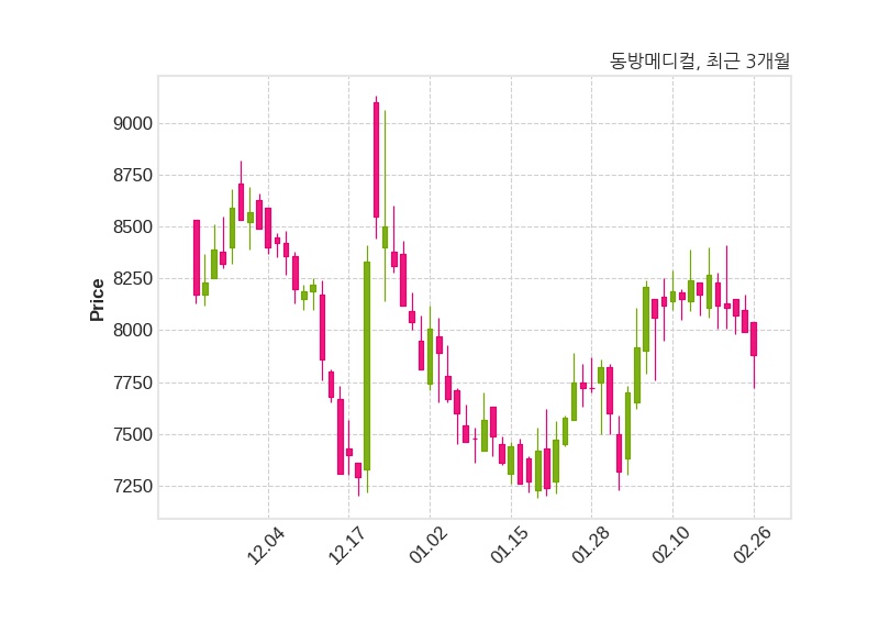 한편, 동방메디컬의 10시 06분 현재주가는 7,880원으로 직전 거래일 대비 110원(-1.38%) 하락이며, 거래량은 92,384주이다.