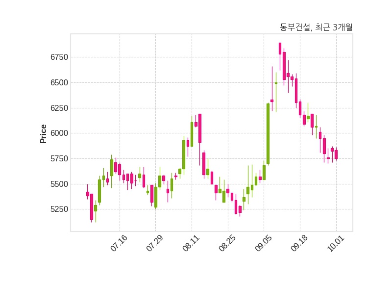 한편, 동부건설의 09시 54분 현재주가는 5,750원으로 직전 거래일 대비 70원(-1.2%) 하락이며, 거래량은 17,483주이다.
