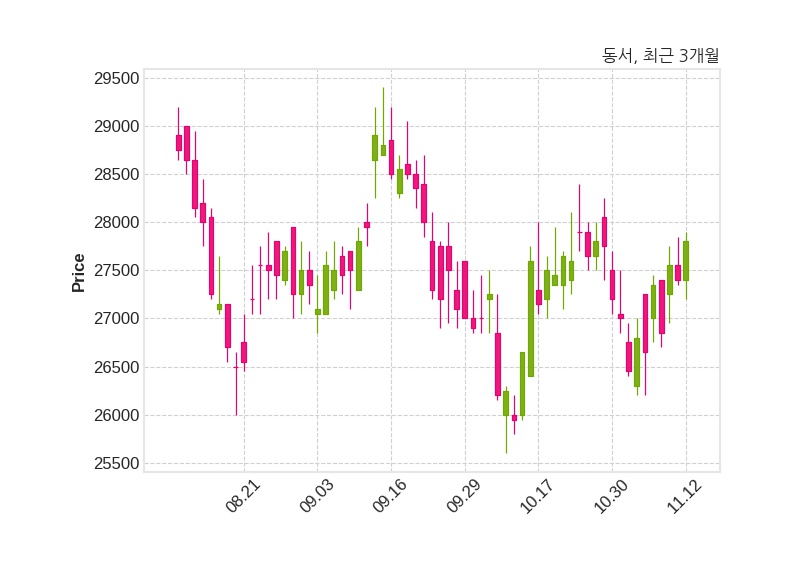 한편, 동서의 14시 49분 현재주가는 27,800원으로 직전 거래일 대비 400원(+1.46%) 상승이며, 거래량은 48,840주이다.
