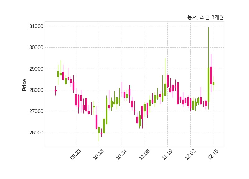한편, 동서는 장 마감 이후 해당 기업공시를 발표했으며 오늘 종가가 28,350원, 거래량은 93,262주로, 직전 거래일 대비 50원(+0.18%) 상승했다.