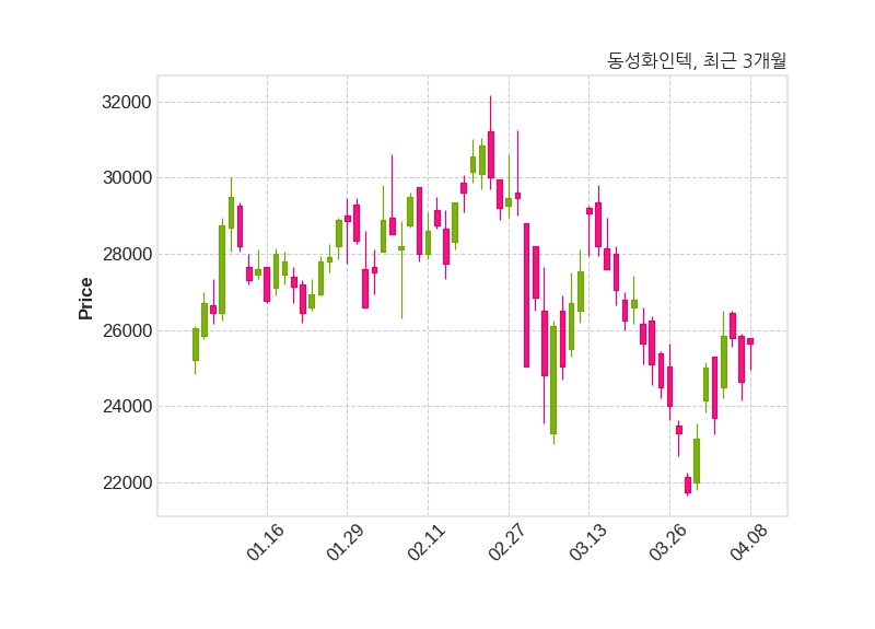한편, 동성화인텍은 장 마감 이후 해당 기업공시를 발표했으며 오늘 종가가 25,650원, 거래량은 174,493주로, 직전 거래일 대비 1,000원(+4.06%) 상승했다.