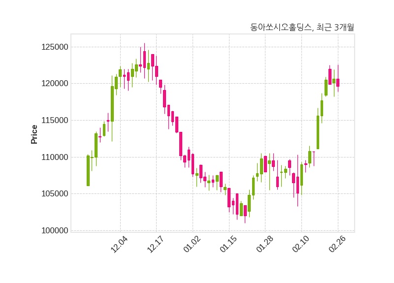한편, 동아쏘시오홀딩스는 장 마감 이후 해당 기업공시를 발표했으며 오늘 종가가 119,600원, 거래량은 13,392주로, 직전 거래일 대비 1,000원(-0.83%) 하락했다.