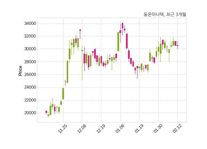 한편, 동운아나텍의 15시 02분 현재주가는 30,500원으로 직전 거래일 대비 50원(-0.16%) 하락이며, 거래량은 80,550주이다.