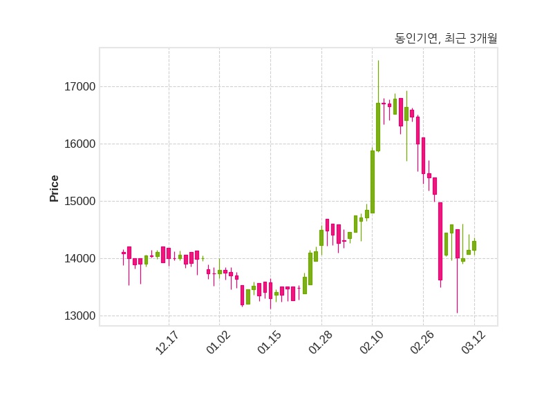 한편, 동인기연의 14시 30분 현재주가는 14,290원으로 직전 거래일 대비 150원(+1.06%) 상승이며, 거래량은 7,285주이다.