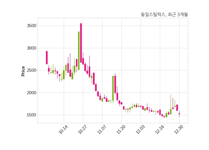 한편, 동일스틸럭스는 장 마감 이후 해당 기업공시를 발표했으며 오늘 종가가 1,523원, 거래량은 1,352,594주로, 직전 거래일 대비 77원(-4.81%) 하락했다.