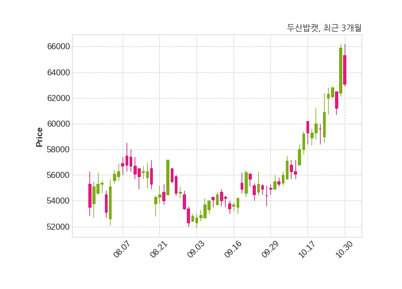한편, 두산밥캣은 장 마감 이후 해당 기업공시를 발표했으며 오늘 종가가 63,100원, 거래량은 568,489주로, 직전 거래일 대비 2,800원(-4.25%) 하락했다.
