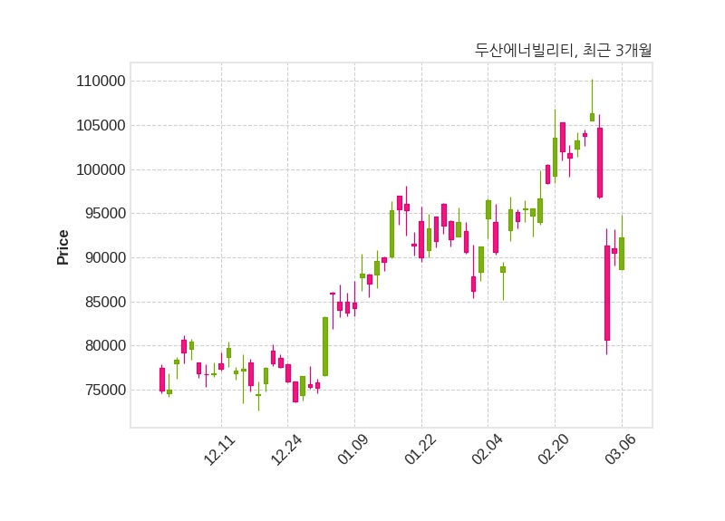 한편, 두산에너빌리티의 10시 03분 현재주가는 92,200원으로 직전 거래일 대비 1,700원(+1.88%) 상승이며, 거래량은 2,235,412주이다.