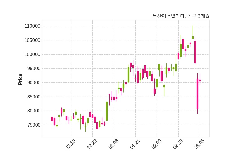 두산에너빌리티는 특별관계자 두산의 지분율이 30.68%에서 30.67%로 변동했다고 05일 공시했다. 한편, 두산에너빌리티는 장 마감 이후 해당 기업공시를 발표했으며 오늘 종가가 90,500원, 거래량은 6,779,363주로, 직전 거래일 대비 9,900원(+12.28%) 상승했다.