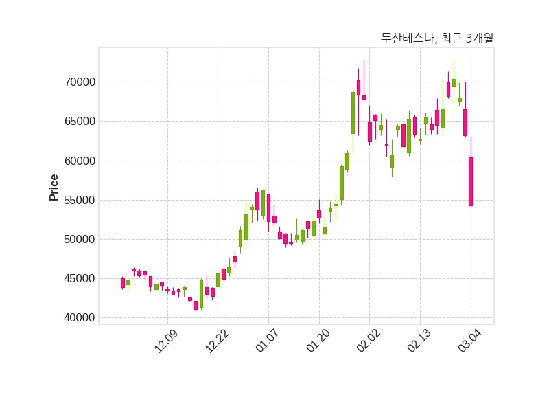 두산테스나는 특별관계자 삼성자산운용의 지분율이 6.98%에서 5.22%로 변동했다고 04일 공시했다. 한편, 두산테스나는 장 마감 이후 해당 기업공시를 발표했으며 오늘 종가가 54,300원, 거래량은 391,117주로, 직전 거래일 대비 8,900원(-14.08%) 하락했다.