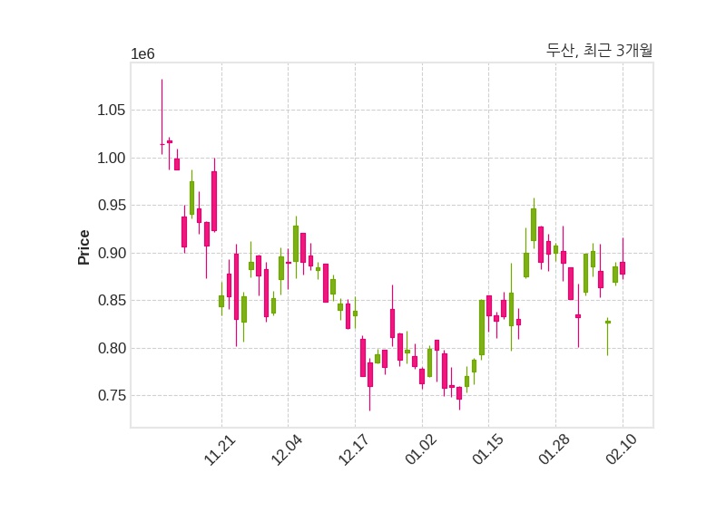 한편, 두산은 장 마감 이후 해당 기업공시를 발표했으며 오늘 종가가 878,000원, 거래량은 120,173주로, 직전 거래일 대비 7,000원(-0.79%) 하락했다.