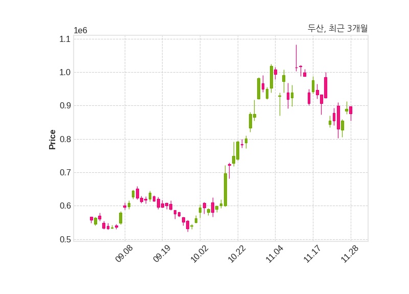 두산은 특별관계자 박정원의 지분율이 40.9%에서 40.08%로 변동했다고 28일 공시했다. 한편, 두산은 장 마감 이후 해당 기업공시를 발표했으며 오늘 종가가 876,000원, 거래량은 79,804주로, 직전 거래일 대비 14,000원(-1.57%) 하락했다.