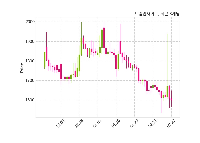 한편, 드림인사이트의 14시 56분 현재주가는 1,599원으로 직전 거래일 대비 9원(-0.56%) 하락이며, 거래량은 97,134주이다.