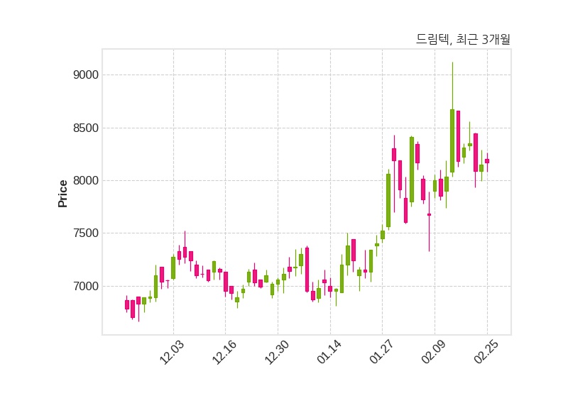 한편, 드림텍의 11시 53분 현재주가는 8,170원으로 직전 거래일 대비 20원(+0.25%) 상승이며, 거래량은 243,034주이다.