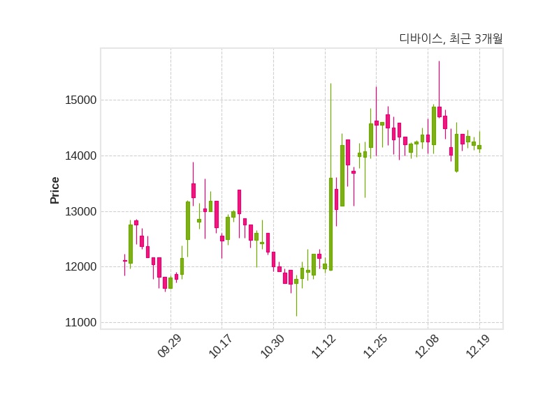한편, 디바이스는 장 마감 이후 해당 기업공시를 발표했으며 오늘 종가가 14,190원, 거래량은 7,792주로, 직전 거래일 대비 60원(-0.42%) 하락했다.