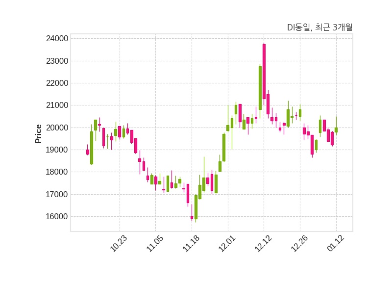 한편, 디아이동일의 15시 03분 현재주가는 20,000원으로 직전 거래일 대비 790원(+4.11%) 상승이며, 거래량은 45,122주이다.