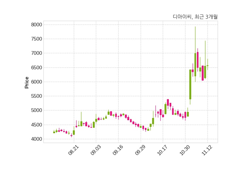 한편, 디아이씨는 장 마감 이후 해당 기업공시를 발표했으며 오늘 종가가 6,570원, 거래량은 2,858,878주로, 직전 거래일 대비 20원(+0.31%) 상승했다.
