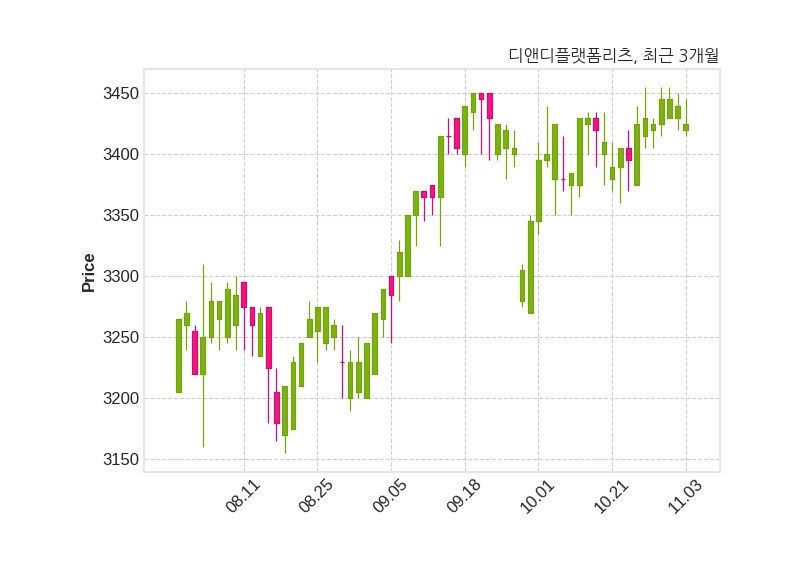 한편, 디앤디플랫폼리츠는 장 마감 이후 해당 기업공시를 발표했으며 오늘 종가가 3,425원, 거래량은 88,566주로, 직전 거래일 대비 15원(-0.44%) 하락했다.