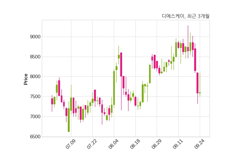 한편, 디에스케이는 장 마감 이후 해당 기업공시를 발표했으며 오늘 종가가 7,600원, 거래량은 154,221주로, 직전 거래일 대비 10원(+0.13%) 상승했다.
