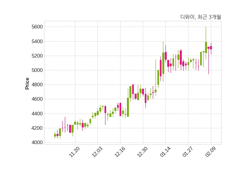 한편, 디와이는 장 마감 이후 해당 기업공시를 발표했으며 오늘 종가가 5,290원, 거래량은 118,166주로, 직전 거래일 대비 10원(-0.19%) 하락했다.