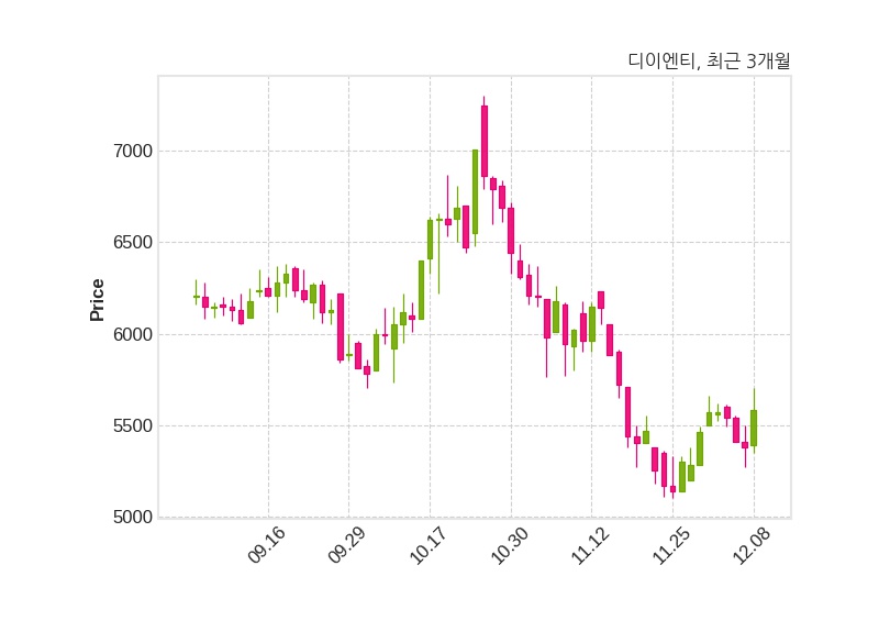 한편, 디이엔티는 장 마감 이후 해당 기업공시를 발표했으며 오늘 종가가 5,580원, 거래량은 117,094주로, 직전 거래일 대비 200원(+3.72%) 상승했다.