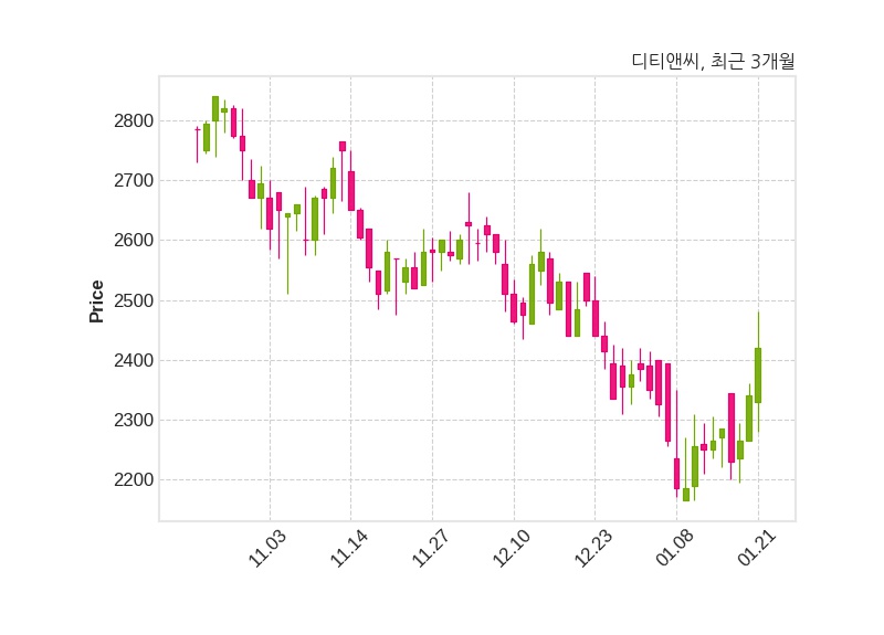 디티앤씨는 특별관계자 수성자산운용의 지분율이 9.35%에서 8.06%로 변동했다고 21일 공시했다. 한편, 디티앤씨는 장 마감 이후 해당 기업공시를 발표했으며 오늘 종가가 2,420원, 거래량은 108,988주로, 직전 거래일 대비 80원(+3.42%) 상승했다.