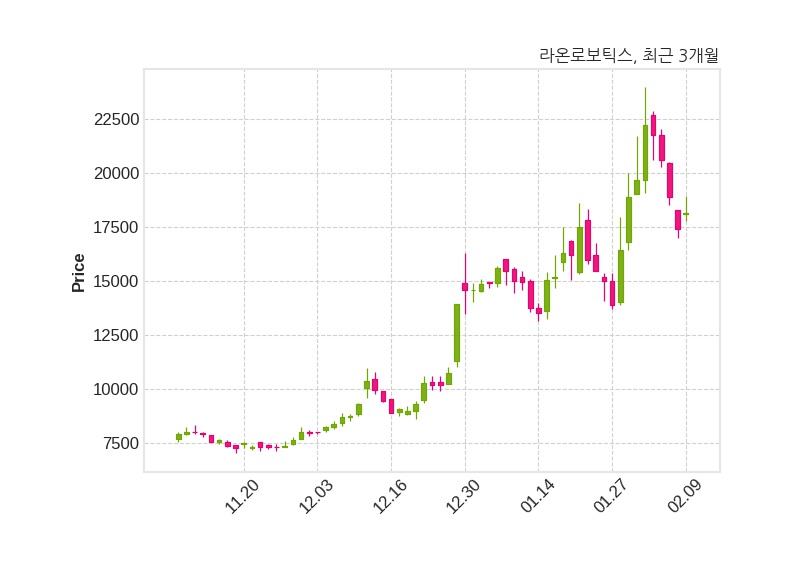 한편, 라온로보틱스의 14시 20분 현재주가는 18,130원으로 직전 거래일 대비 730원(+4.2%) 상승이며, 거래량은 734,211주이다.