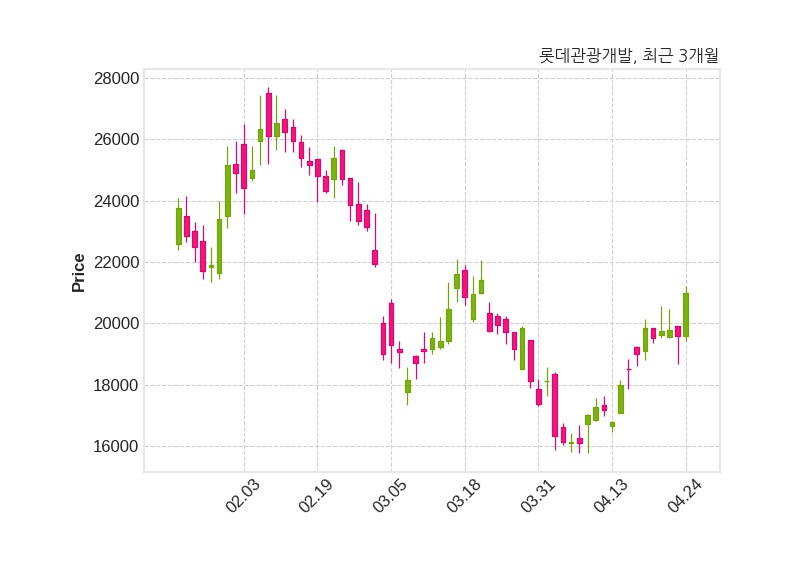 한편, 롯데관광개발은 장 마감 이후 해당 기업공시를 발표했으며 오늘 종가가 21,000원, 거래량은 777,338주로, 직전 거래일 대비 1,430원(+7.31%) 상승했다.