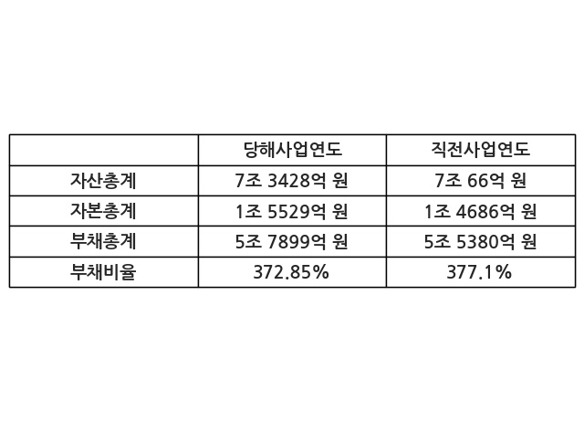 또한, 이번사업연도의 자산총계는 7조 3428억 원으로 직전사업연도 대비 4.8% 증가한 한편, 부채총계는 5조 7899억 원으로 4.55% 증가, 자본총계는 1조 5529억 원으로 5.74% 증가했다.