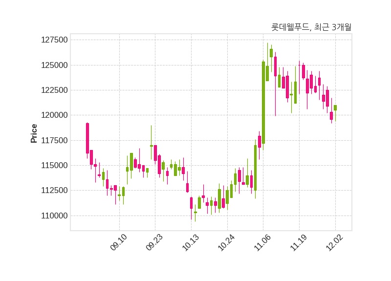 한편, 롯데웰푸드는 장 마감 이후 해당 기업공시를 발표했으며 오늘 종가가 121,000원, 거래량은 5,805주로, 직전 거래일 대비 1,400원(+1.17%) 상승했다.