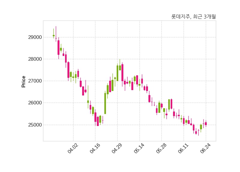 한편, 롯데지주는 장 마감 이후 해당 기업공시를 발표했으며 오늘 종가가 25,000원, 거래량은 129,967주로, 직전 거래일 대비 50원(-0.2%) 하락했다.